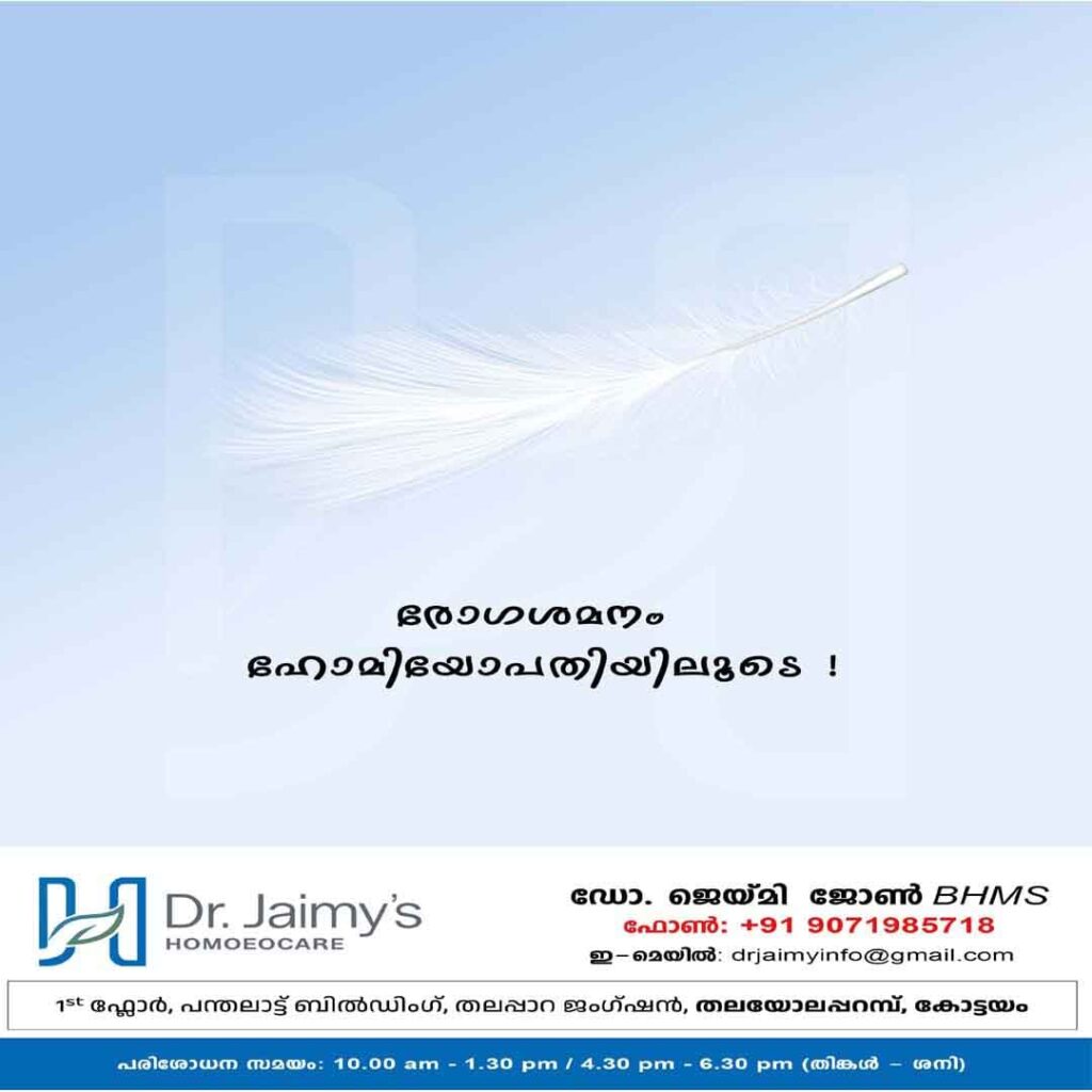 Dr.Jaimy’s Homoeo Care Posted on 17 January 202617 January 2026 by nammudenadu തലപ്പാറ ജംഗ്ഷന് സമീപം പന്തലാട്ട് ബിൽഡിങ്സിൽ Dr.Jaimy’s Homoeo Care പ്രവർത്തനം ആരംഭിച്ചിരിക്കുന്നു. ഡോക്ടർ ജെയ്മി ജോണിൻ്റെ ഹോമിയോ ചികിത്സ സേവനം ക്ലിനിക്കിൽ ലഭ്യമാണ്. Post navigation ‘ഓപ്പറേഷൻ ഷോർട്ട് സർക്യൂട്ട്’ KSEB ഓഫീസുകളിൽ മിന്നൽ പരിശോധനപെൻഷൻകാർ ആദായനികുതി സ്റ്റേറ്റ്മെന്റും മസ്റ്ററിംഗും പൂർത്തിയാക്കണം