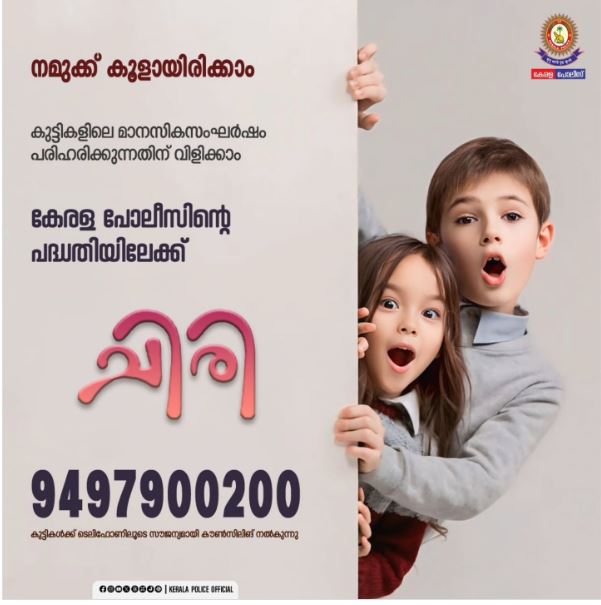 കുട്ടികളുടെ പെരുമാറ്റം രക്ഷിതാക്കൾ ശ്രദ്ധിക്കേണ്ടതണ്. അവർ ലഹരി ഉപയോഗിക്കുന്നതായി നിങ്ങളുടെ ശ്രദ്ധയിൽപ്പെട്ടാൽ ഭയപ്പെടേണ്ടതില്ല സഹായിക്കാൻ കേരള പോലീസ് ഉണ്ട്. ബന്ധപ്പെടാം ചിരി ഹെല്പ്പ്ലൈനുമായി. ചിരി ഹെല്പ് ലൈനിലേക്ക് വിളിക്കാം – 9497900200.